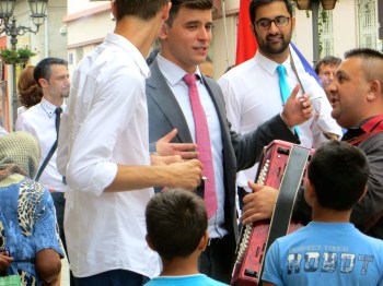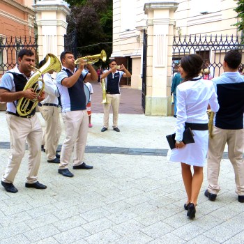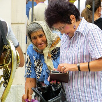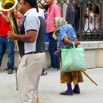 Outside the gates a raucous brass band played crowd favorites, women in tight skirts teetered on 5 inch heels, smoking men sang along with the band, and an old woman asked for alms. Some linked hands to dance the “kolo” – the Serbian circle dance, children scampered in and out of their feet, curious onlookers recorded the festivities … then shocking fireworks!