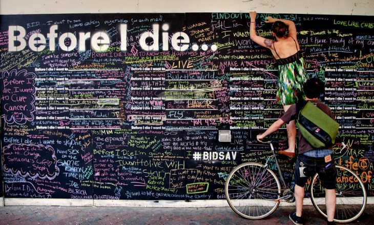 The Before I Die Project website explains that: “Each wall is created by local residents who want to make a space in their community to restore perspective and share more with one another. Each wall is a tribute to living an examined life.”