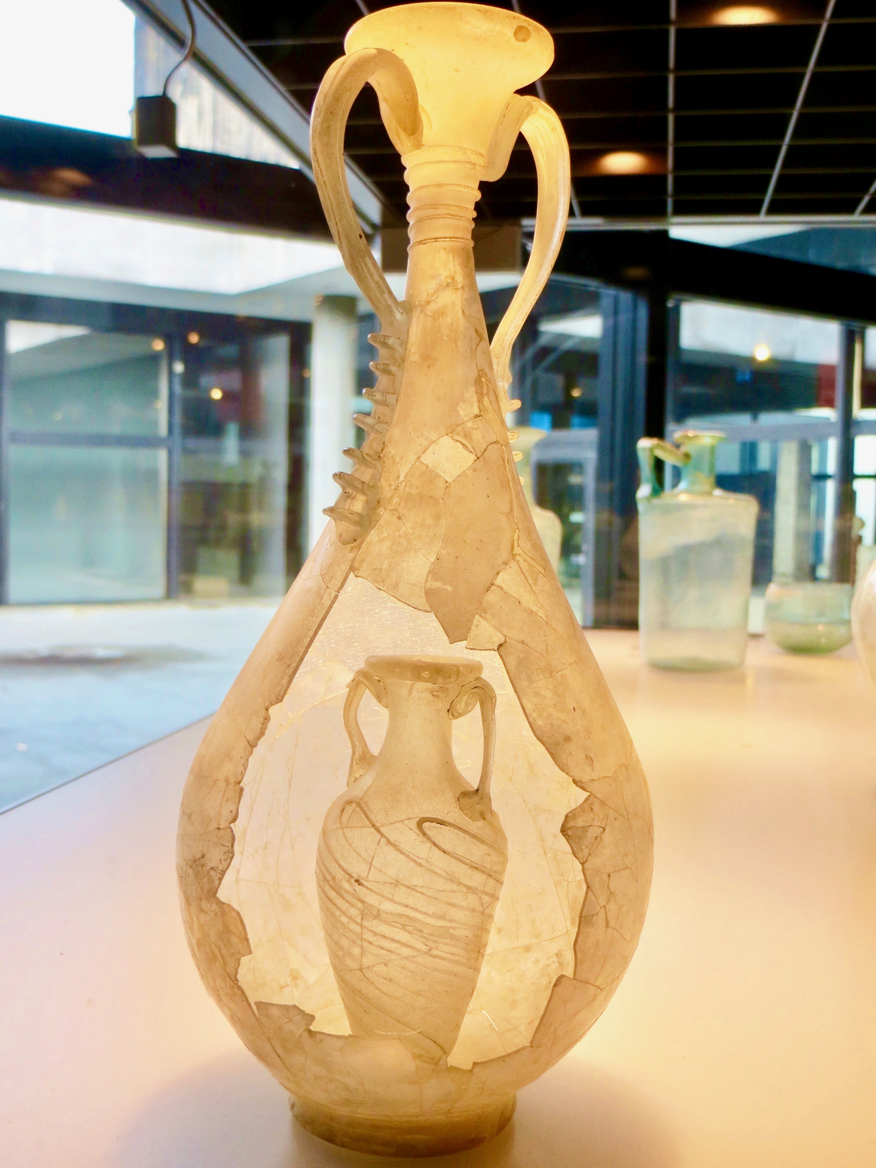 Laura, most historians believe that glass was discovered by accident, when the ingredients just happened to be in a very hot fire. Of course, I suspect that many things that humans have today are lucky accidents. But it’s the transition from glass blobs in a fire to these amphora that’s the testament to our human intelligence and creativity. ~James