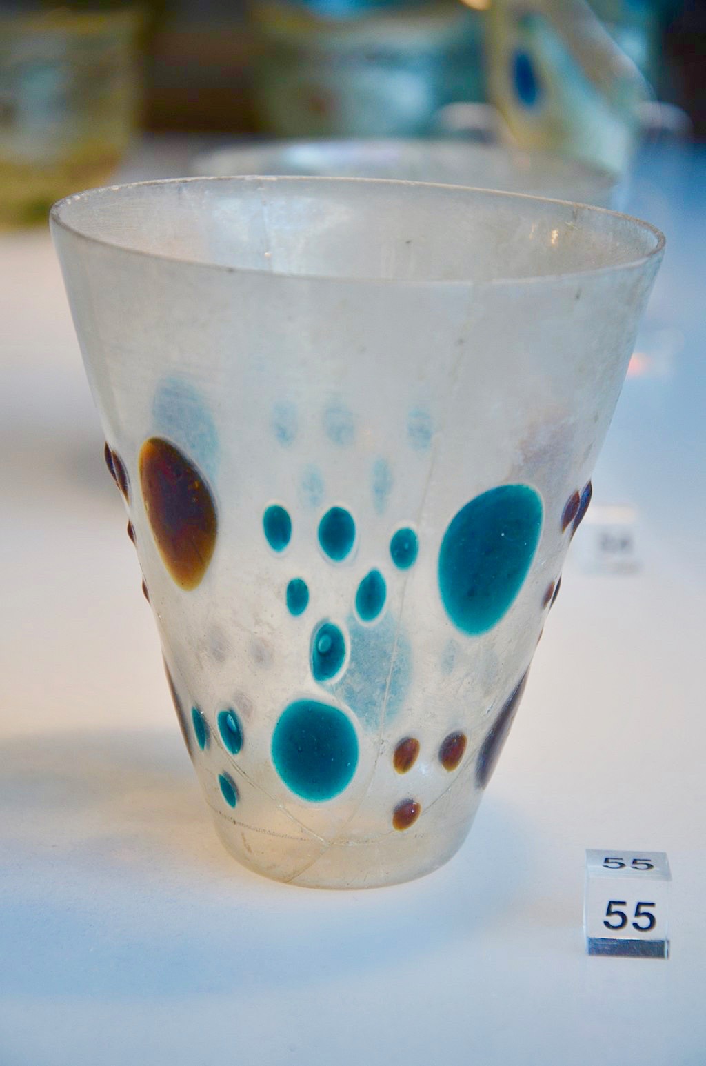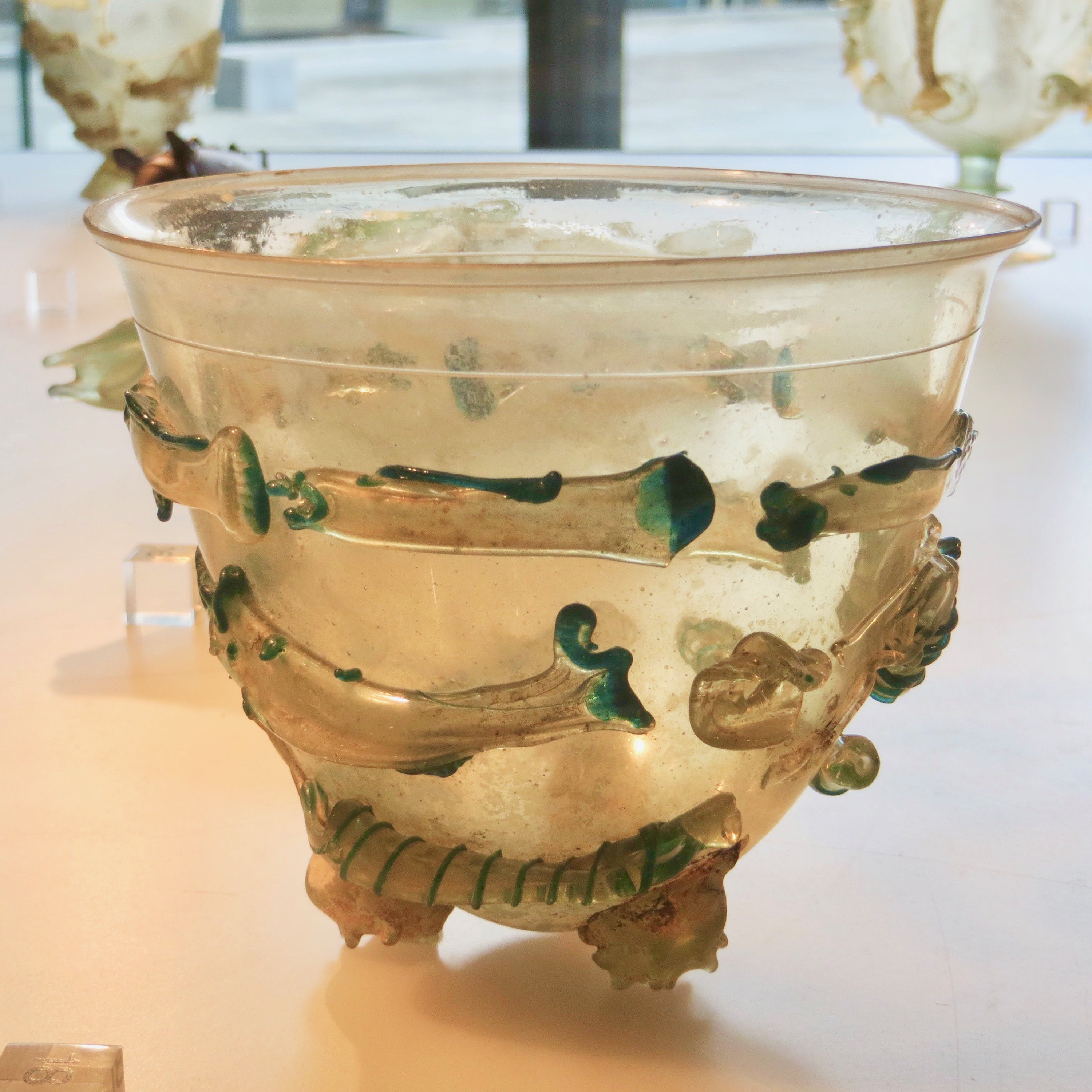 Cologne, in northwestern Germany, was established as a regional Roman capital in 50 AD and became a major glass manufacturer and supplier for aristocrats and commoners alike; which explains why the Roman-Germanic Museum (Römisch-Germanisches Museum) has such an extensive and impressive collection of 2,000 year-old glassware.