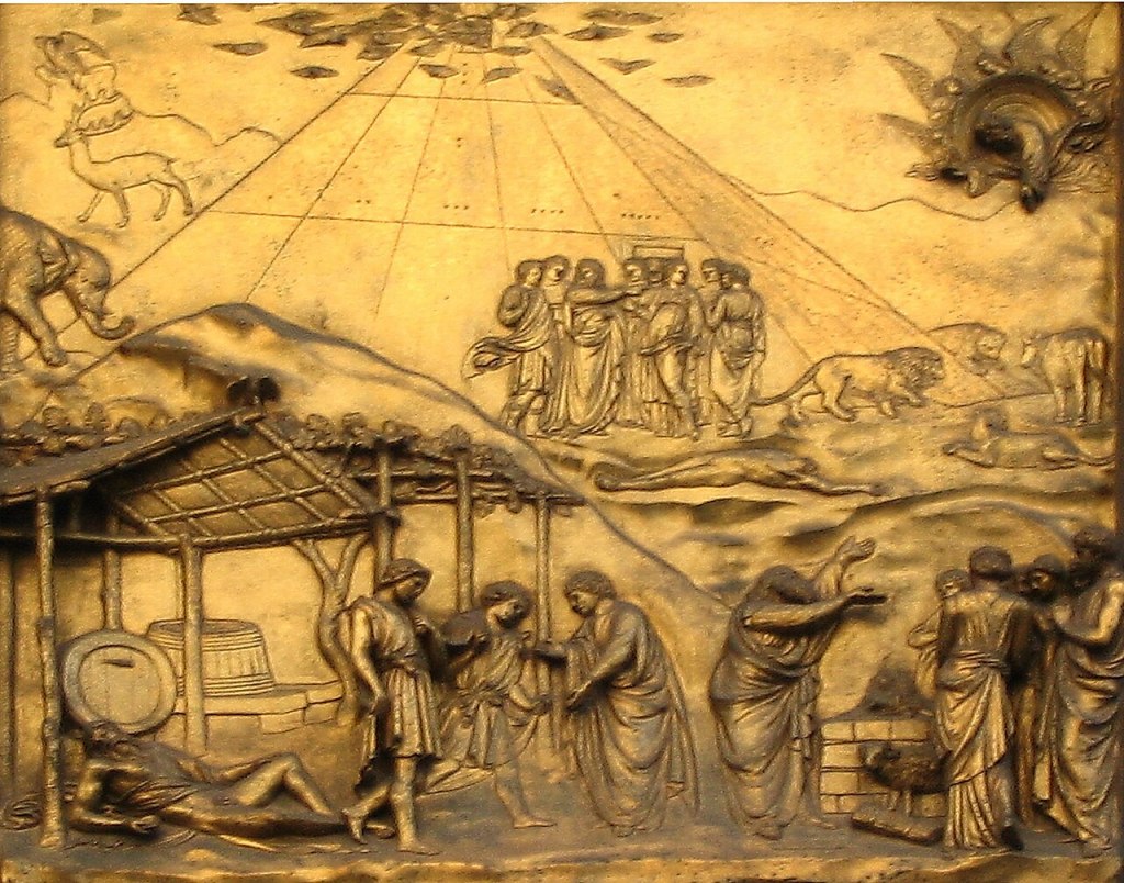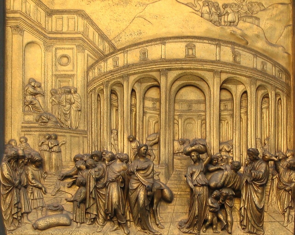Saying this is an artistic tweak is a massive understatement. Representing three dimensional space on a flat surface had challenged artists for thousand of years. Ghiberti and his new technique demonstrated that instead of showing only one event per scene artists could now tell a story, arranged from the beginning to the end.